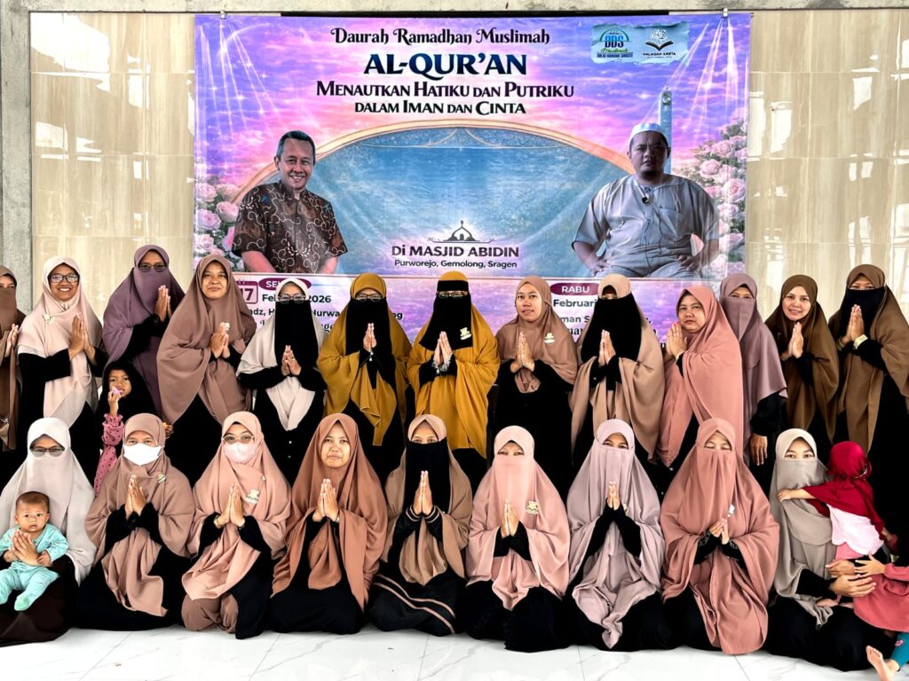 Gemolong, 18 Februari 2026 – Hakreta BDS Muslimah menyelenggarakan Daurah Ramadhan Muslimah selama dua hari (17–18 Februari 2026) di Masjid Abidin, Purworejo, Gemolong. Mengusung tema “Al-Qur’an Menautkan Hatiku dan Putriku dalam Iman dan Cinta,” kegiatan ini diikuti oleh ratusan peserta dari berbagai wilayah, termasuk dari luar kota.